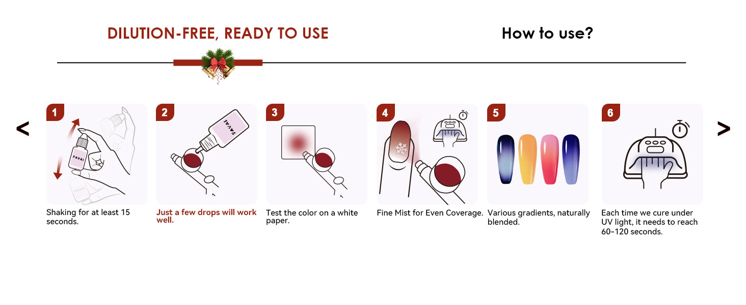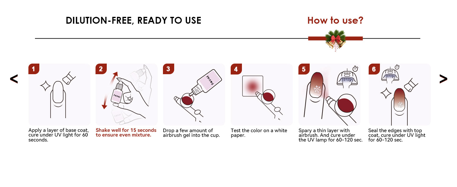 FAVAI 6 Farben Airbrush Gel Nagellack Air Gel Set - Weihnachtskollektion 6*15ml