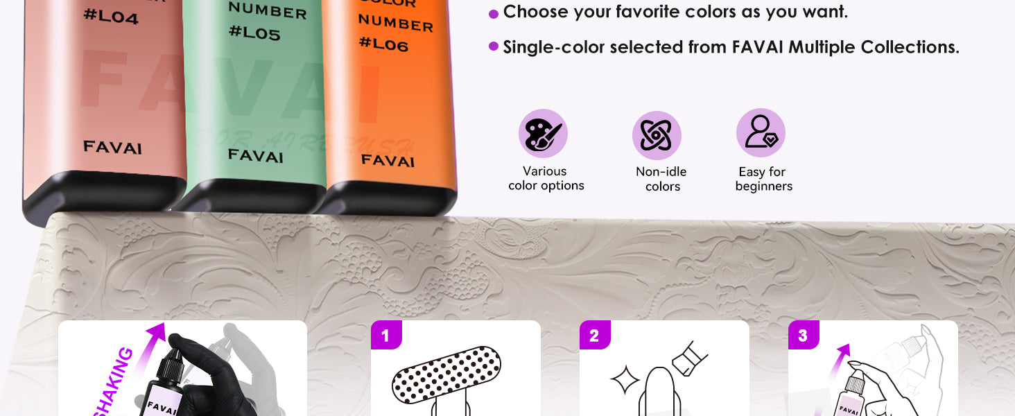 •Airbrush-Nagellack enthält oft entflammbare Substanzen, halten Sie ihn daher fern von offenen Flammen oder Wärmequellen.