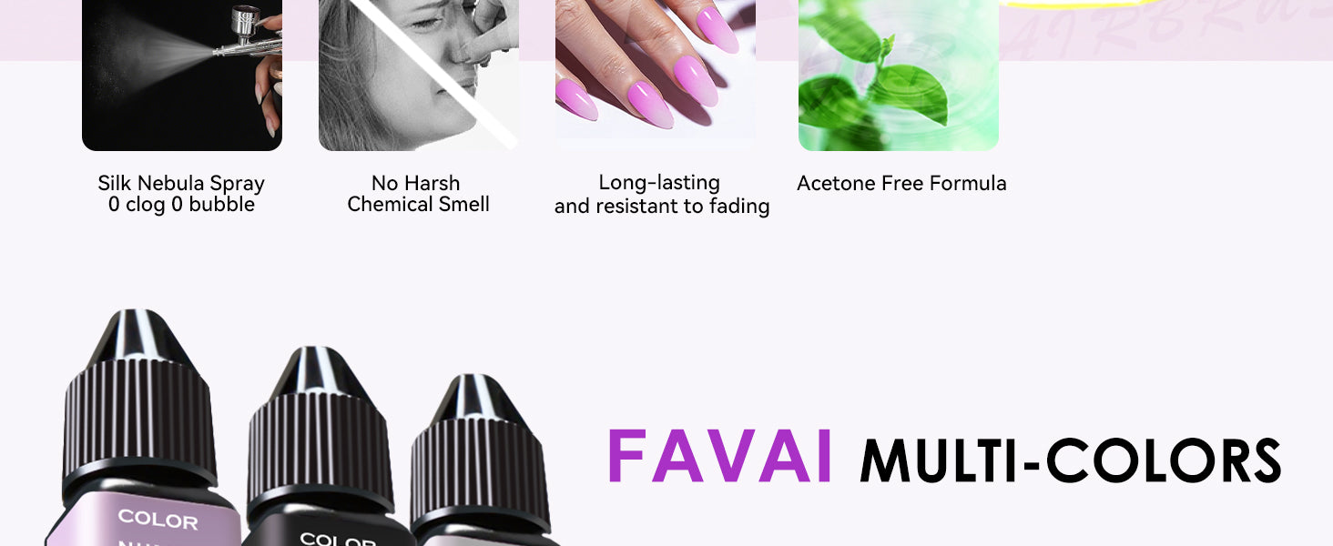 •If you experience discomfort such as dizziness, nausea, or skin irritation while using airbrush nail polish, stop immediately.