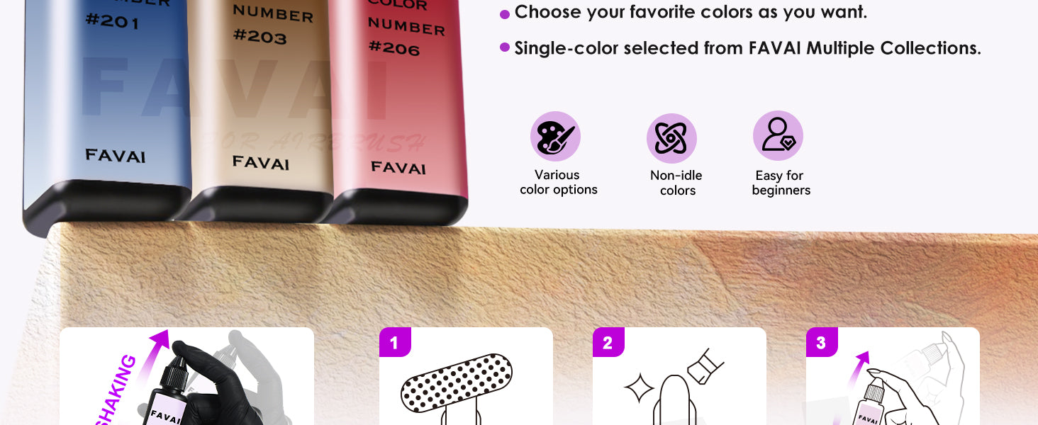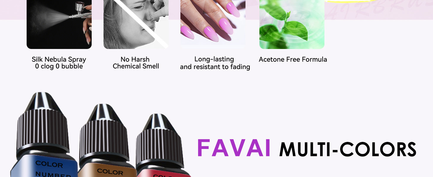 エアブラシネイルポリッシュや関連材料を直射日光や熱源を避けて涼しく乾燥した場所に保管してください。