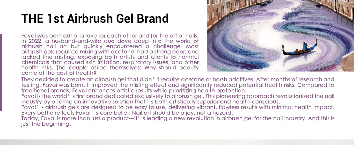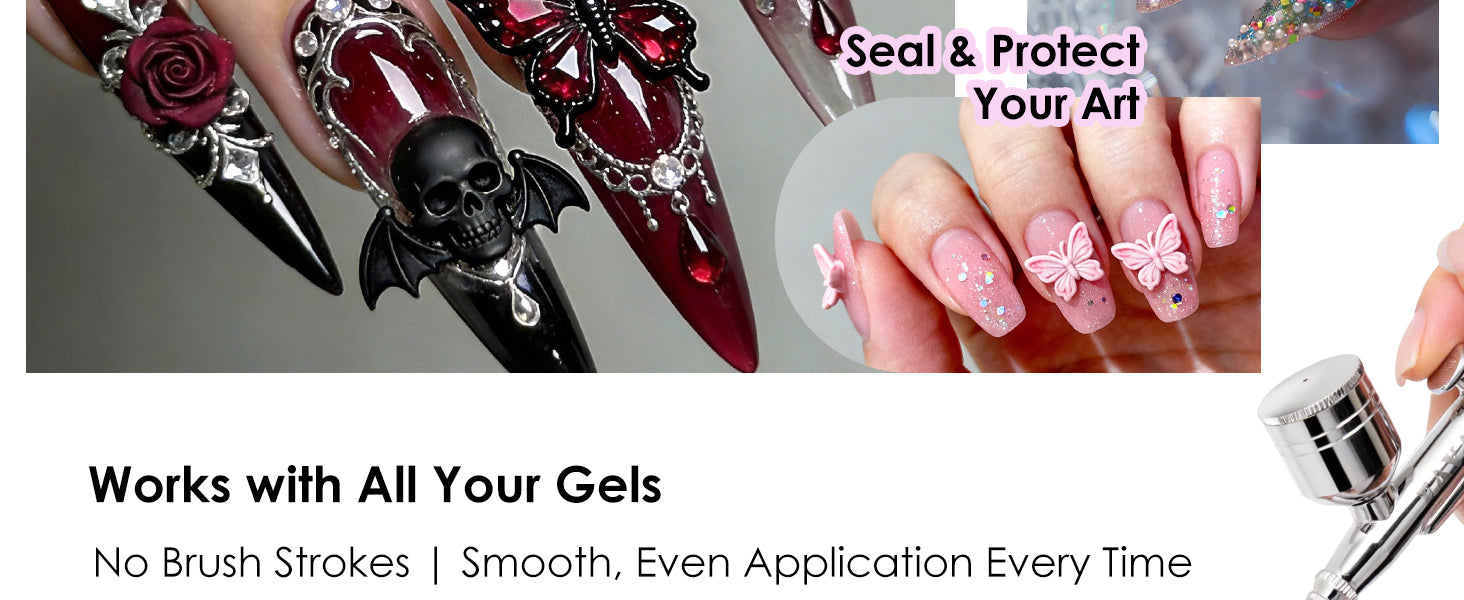 Compatible with Most Gel Products – Works with FAVAI Airbrush Gel and most color gels, featuring a self-leveling formula that eliminates brush strokes for a smooth, professional finish.