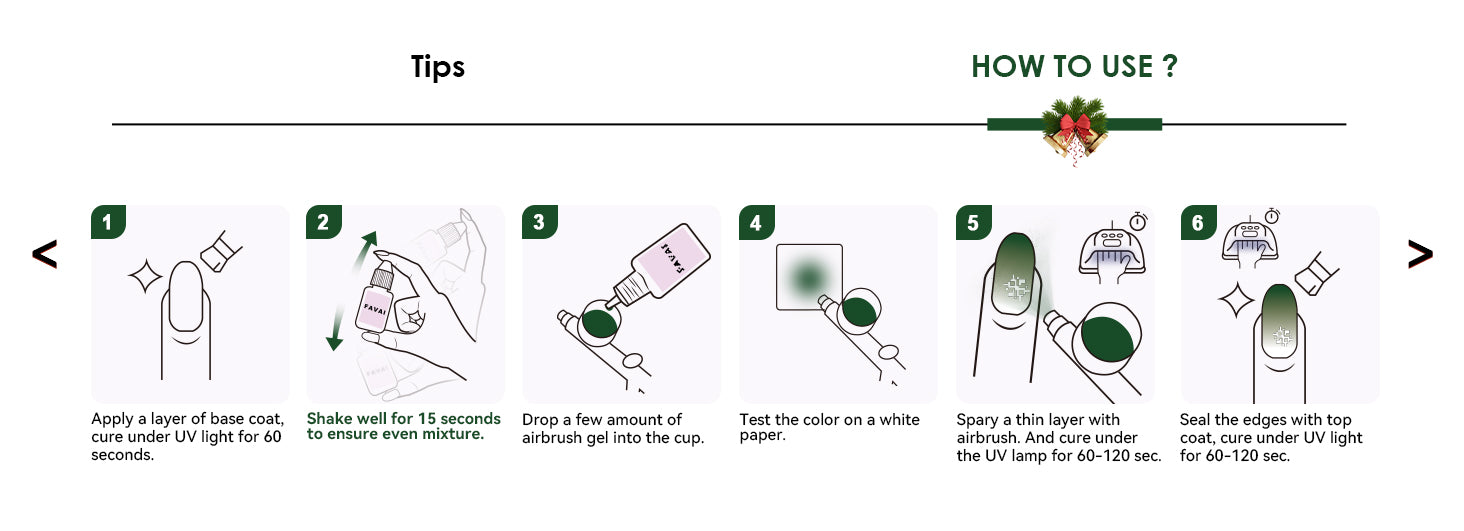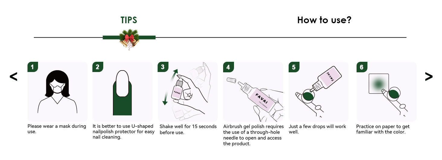 •If you experience discomfort such as dizziness, nausea, or skin irritation while using airbrush nail polish, stop immediately.