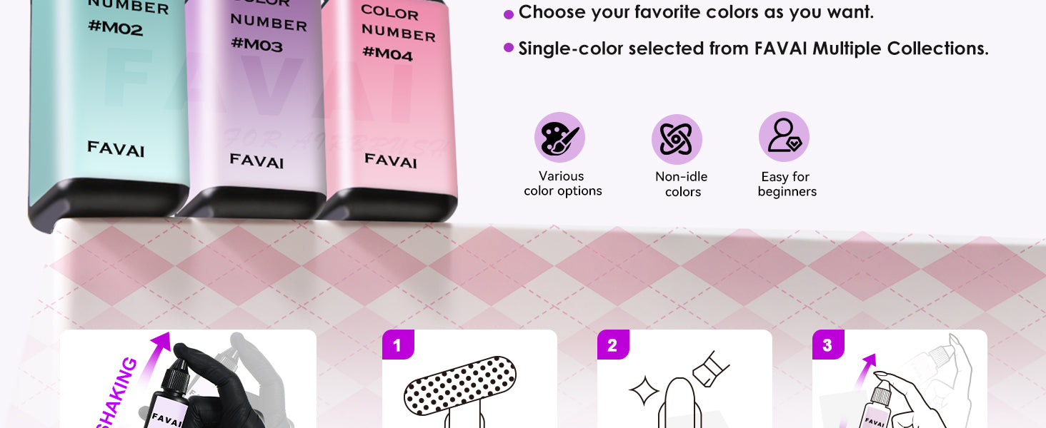 •If you experience discomfort such as dizziness, nausea, or skin irritation while using airbrush nail polish, stop immediately.